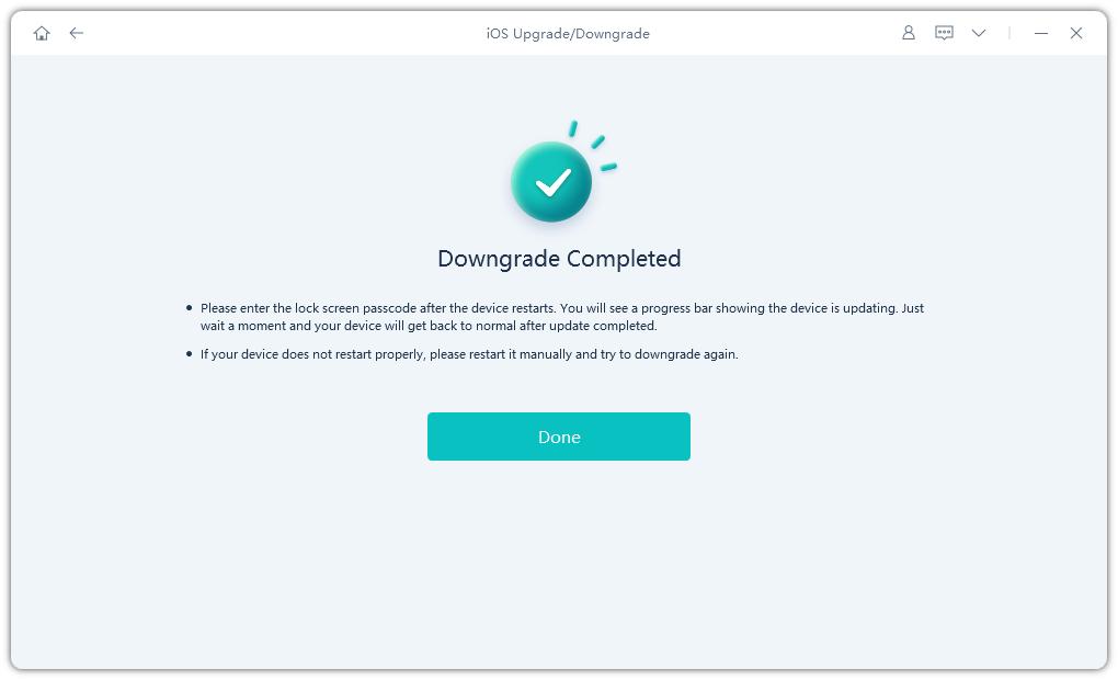 - Schritt 5UltFone beginnt mit dem Downgrade Ihres iOS/iPadOS. Trennen Sie Ihr Gerät während dieses Vorgangs nicht. Sobald es abgeschlossen ist, kehrt Ihr iPhone/iPad zur vorherigen Version zurück.